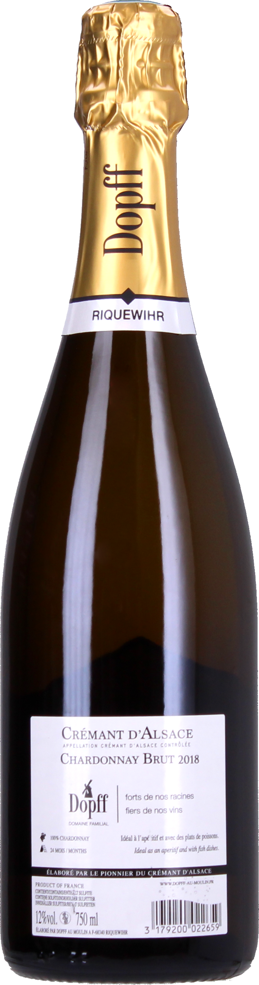 Dopff au Moulin Cremant d'Alsace AOC Chardonnay Brut 2022, 0,75 l