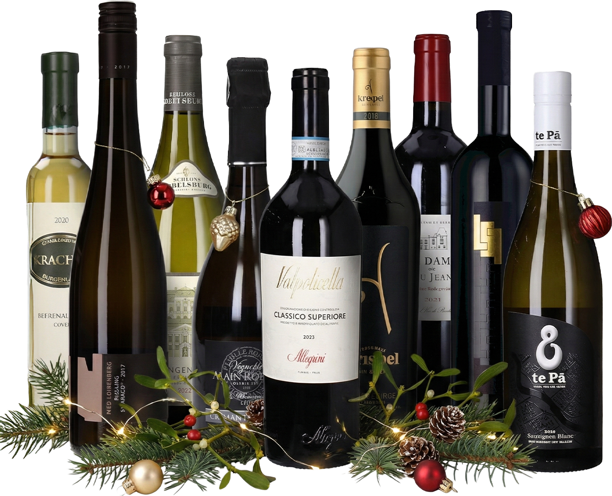 Extra für dich zusammengestellt damit der Weingenuss auch seinen Höhepunkt findet. Hier ist alles dabei: 4 Weißweine, 3 Rotweine, die vorzüglich als Speisenbegleiter zu diversen Weihnachtsgerichten geeignet sind. Dazu noch ein eleganter Schaumwein als Aperitif und ein nobler Süßwein als perfekter Begleiter zum Dessert. Alles ausgezeichnete Weine von sehr namhaften Qualtitätswinzern!